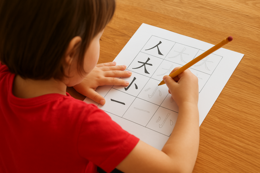 Chinese characters are written using a specific stroke order, and learning it early makes writing easier and more natural over time.