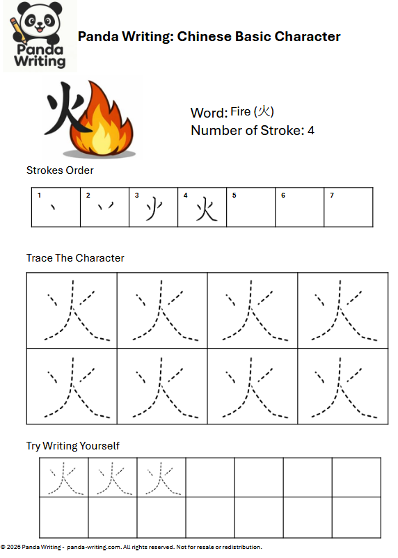 At Panda Writing, we provide free printable Chinese writing worksheets (PDF) designed especially for young learners and beginners.